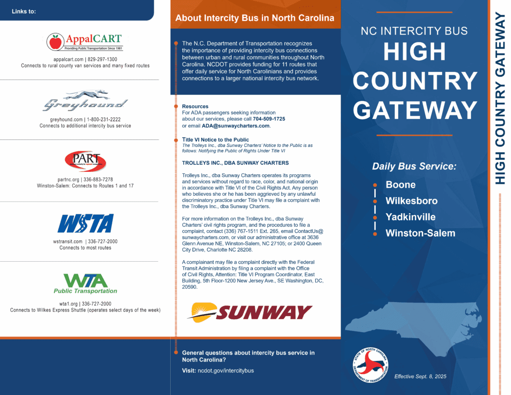 Click on each brochure below for specific information about routes, schedules, & pricing.